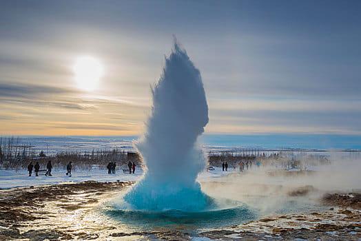;等待盖歇尔间歇泉喷发出壮观的水柱;并欣赏黄金瀑布的磅礴水雾与梦幻彩虹。