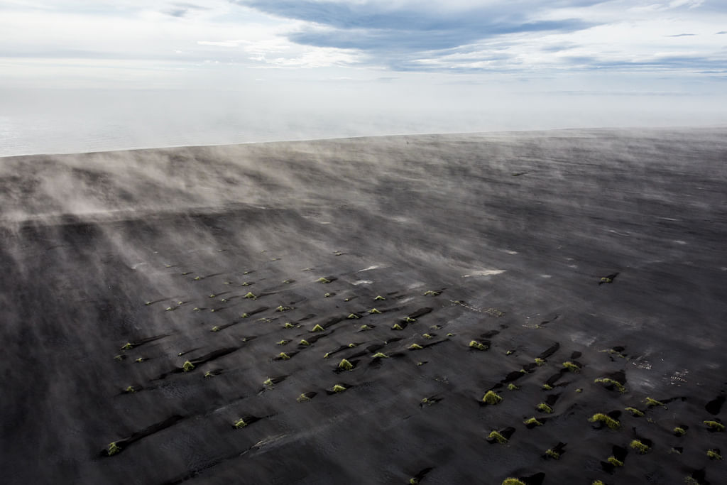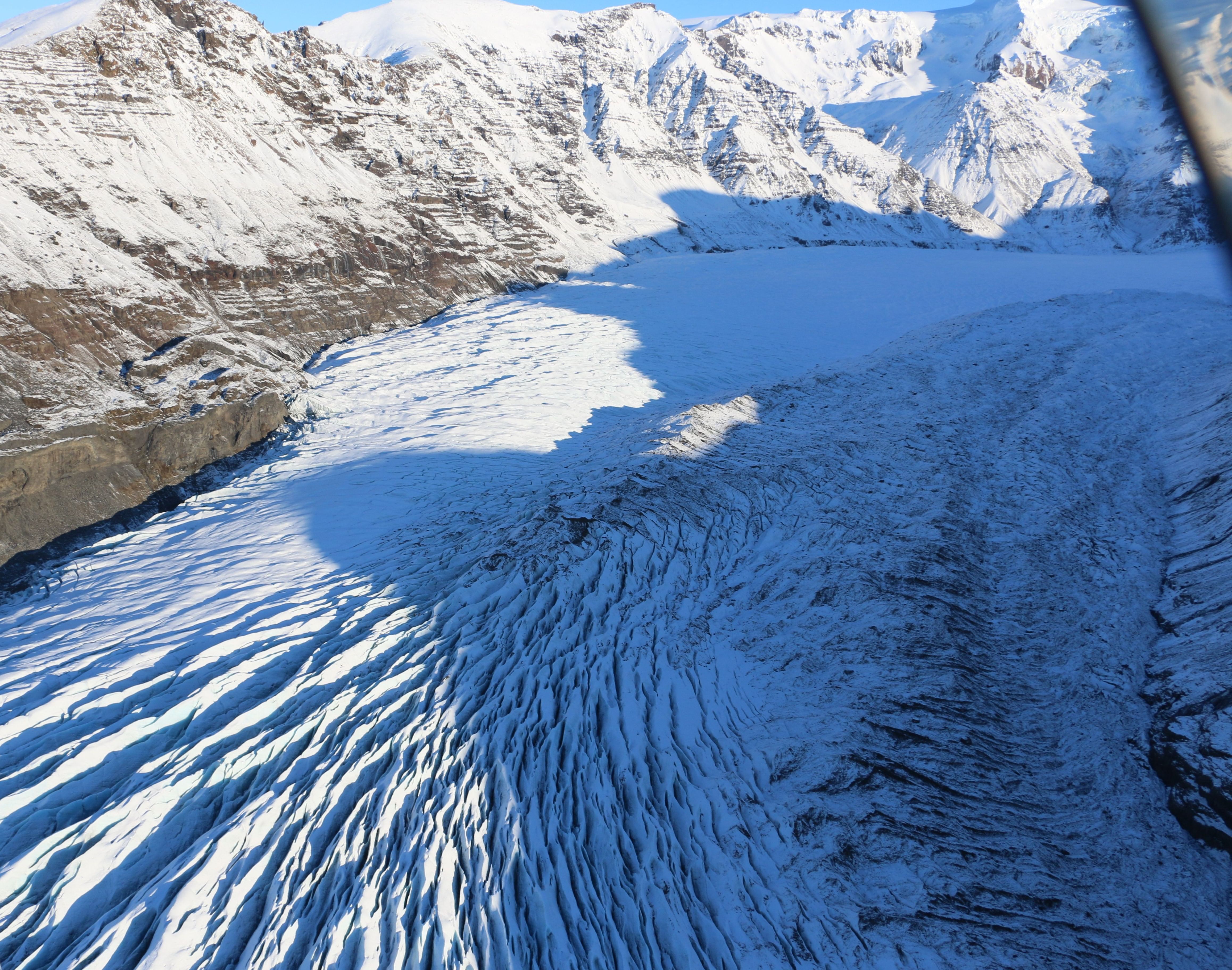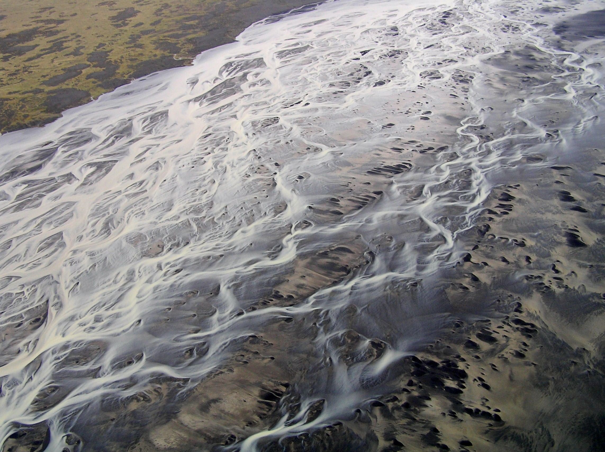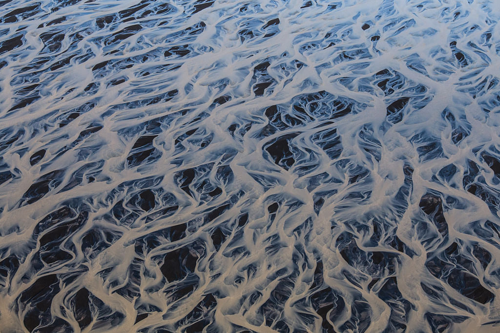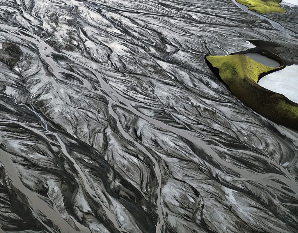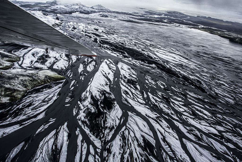 - Admire intricate patterns of black sand, silt, and meltwater from above.