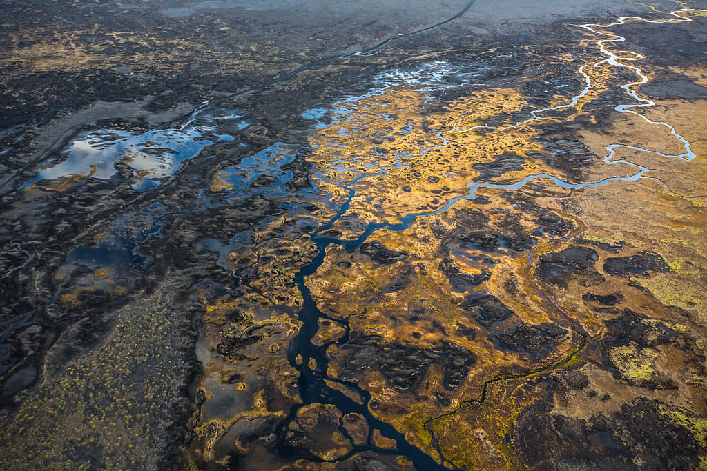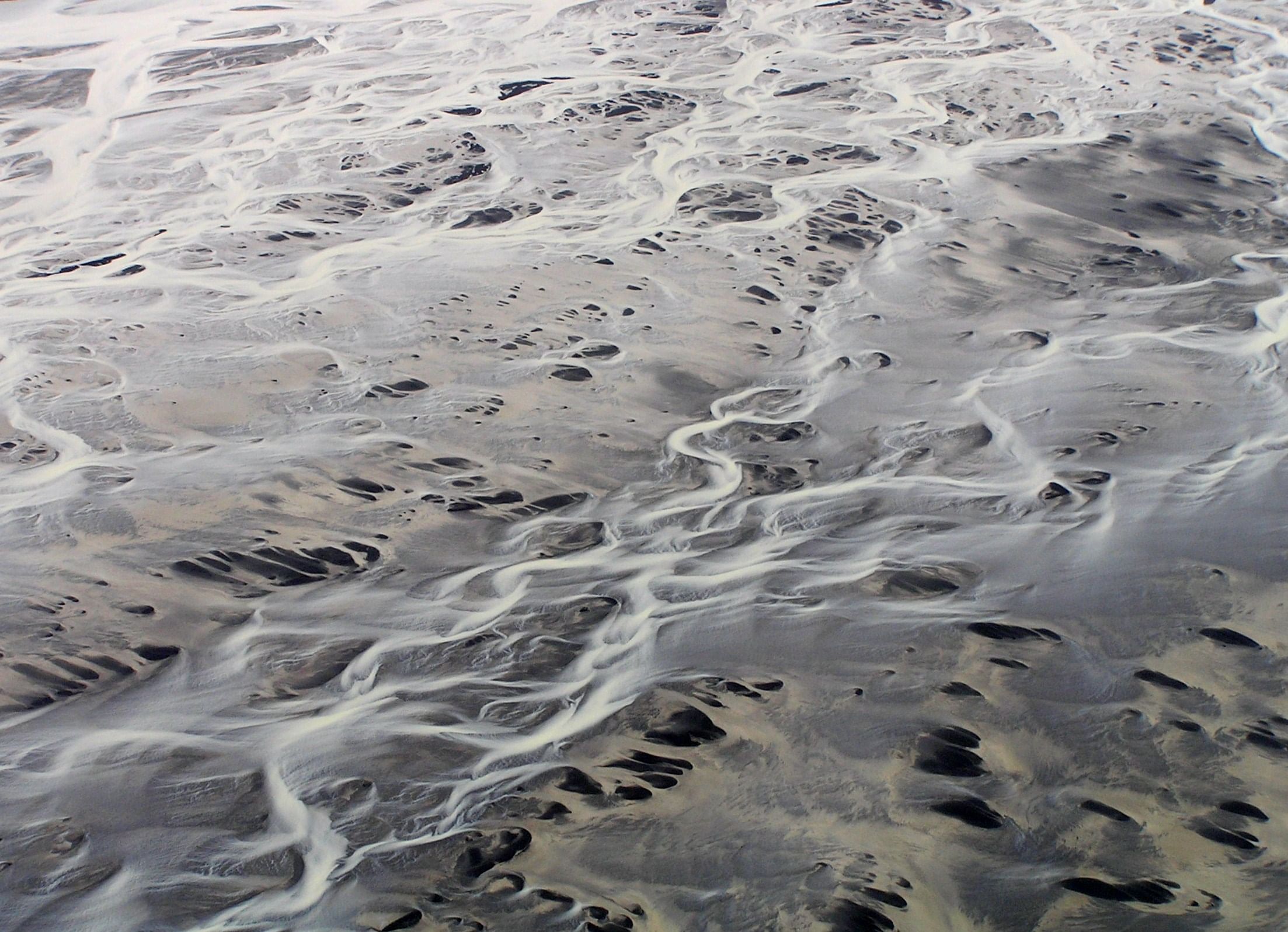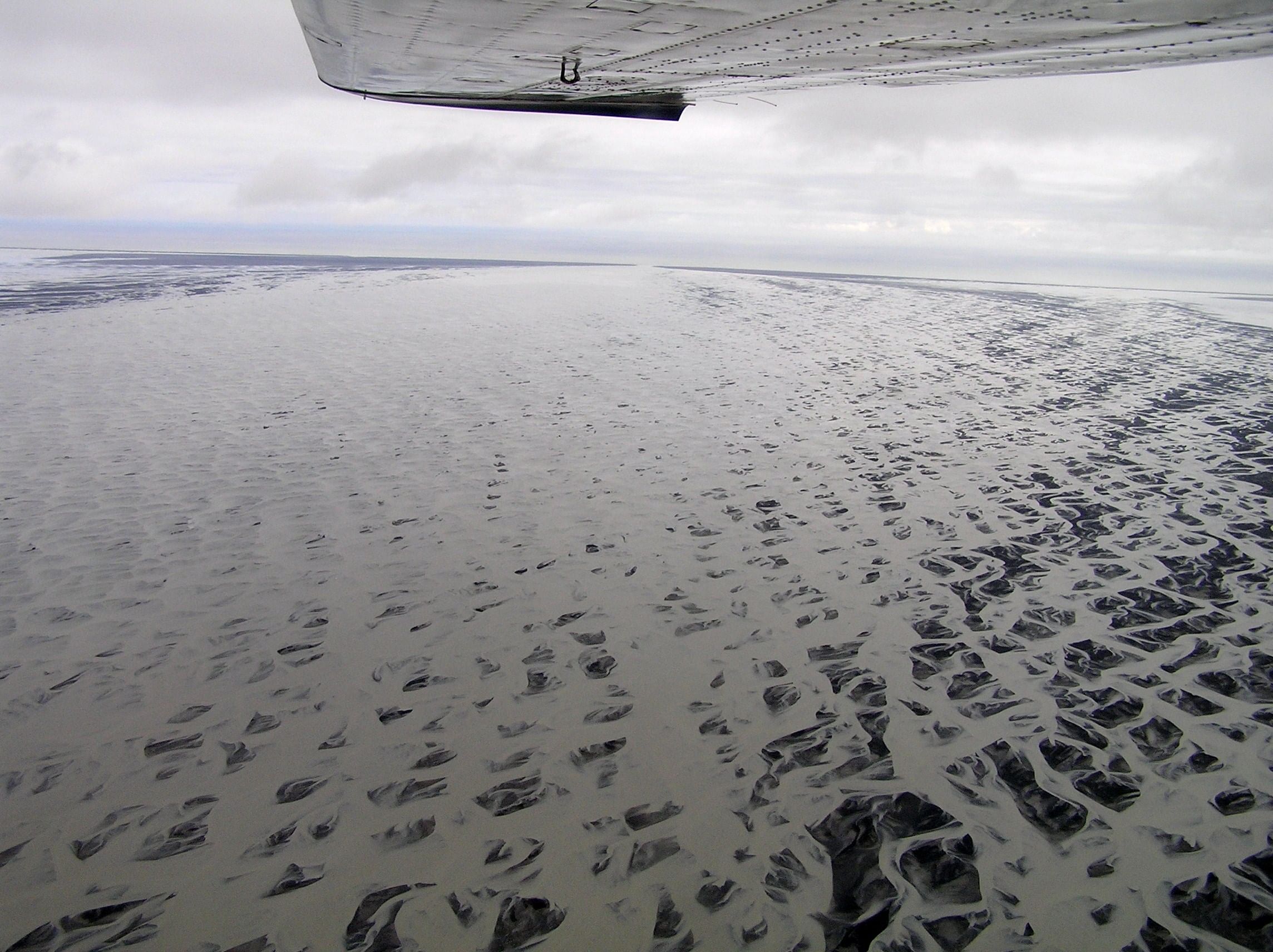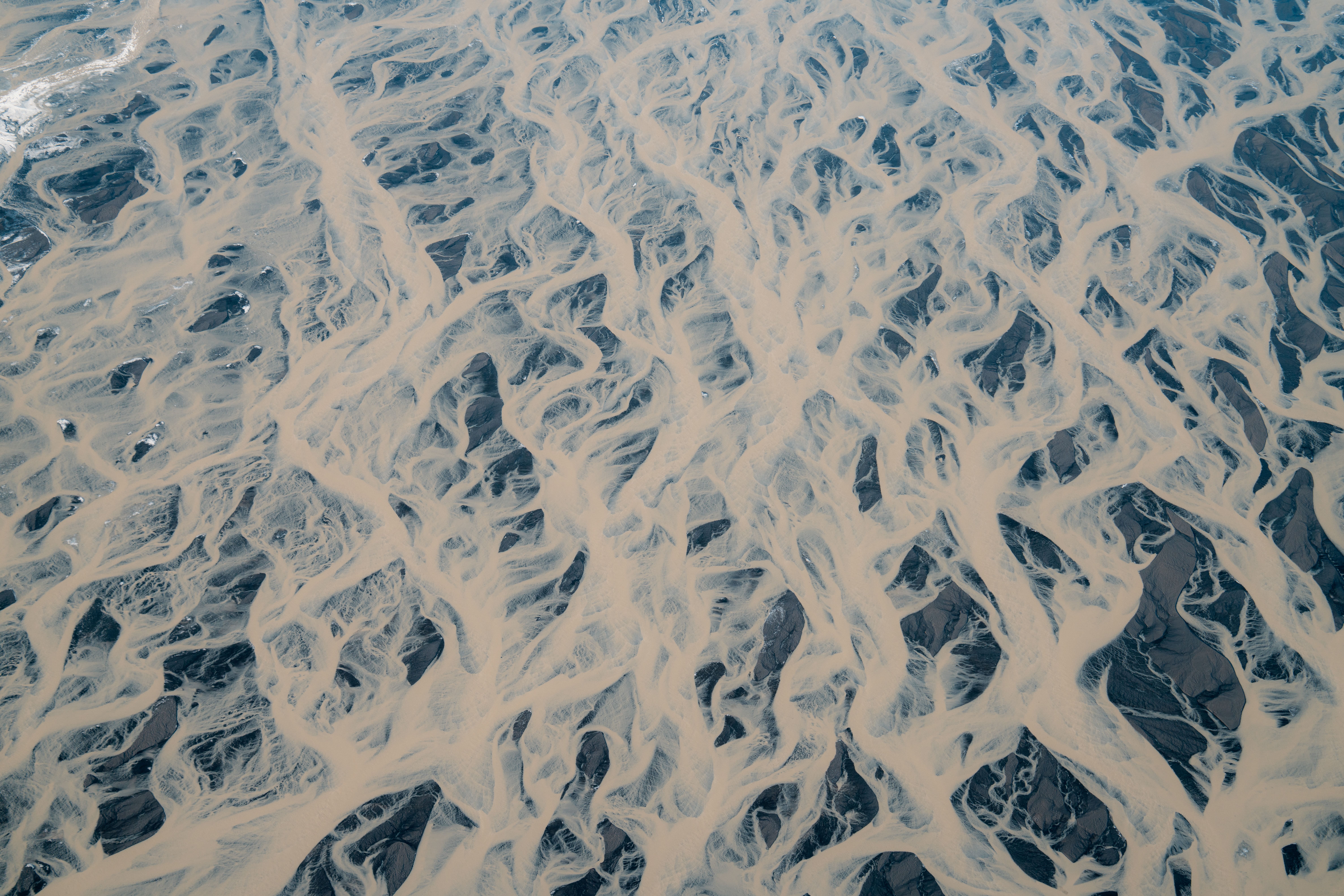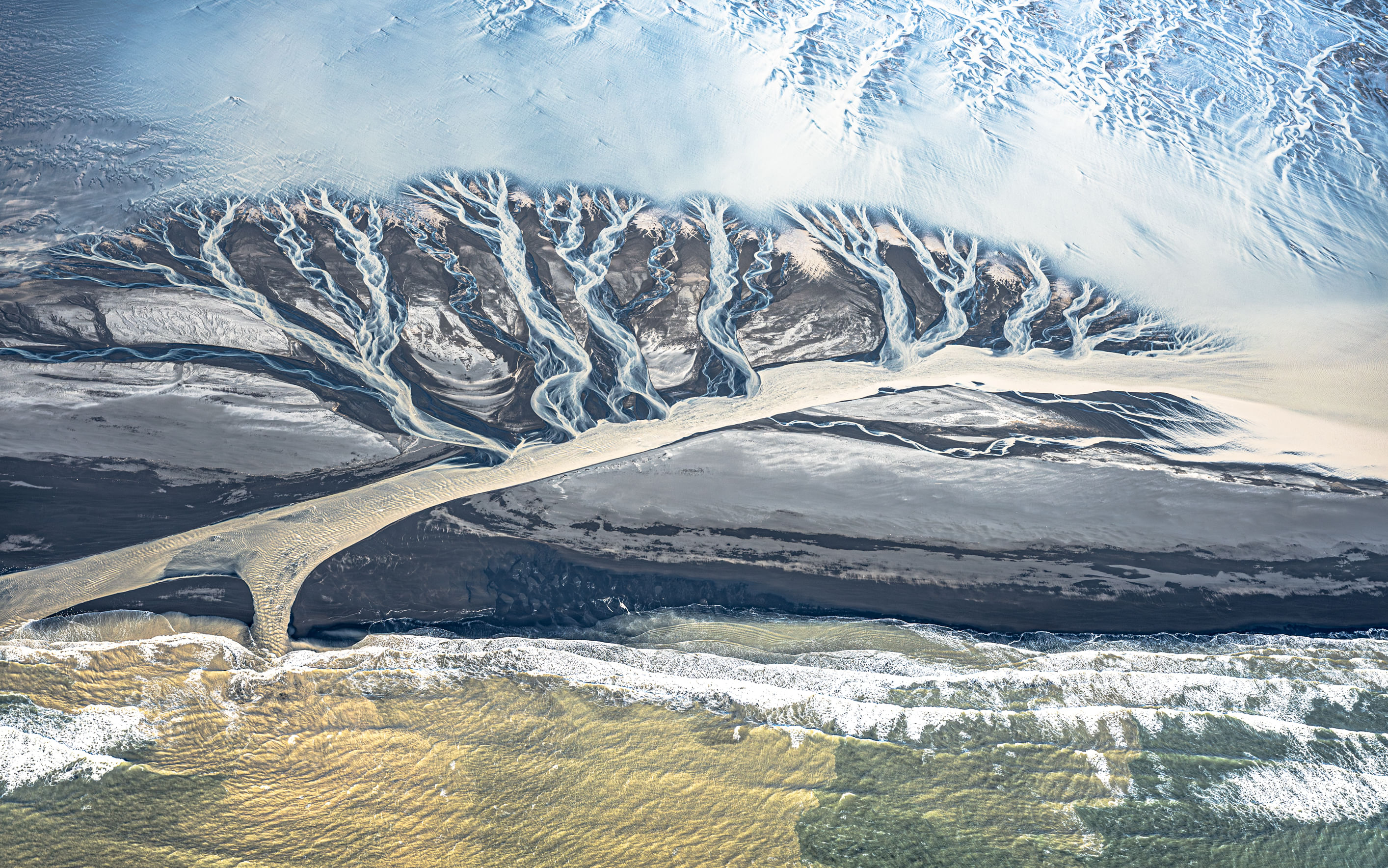- Admire intricate patterns of black sand, silt, and meltwater from above.
