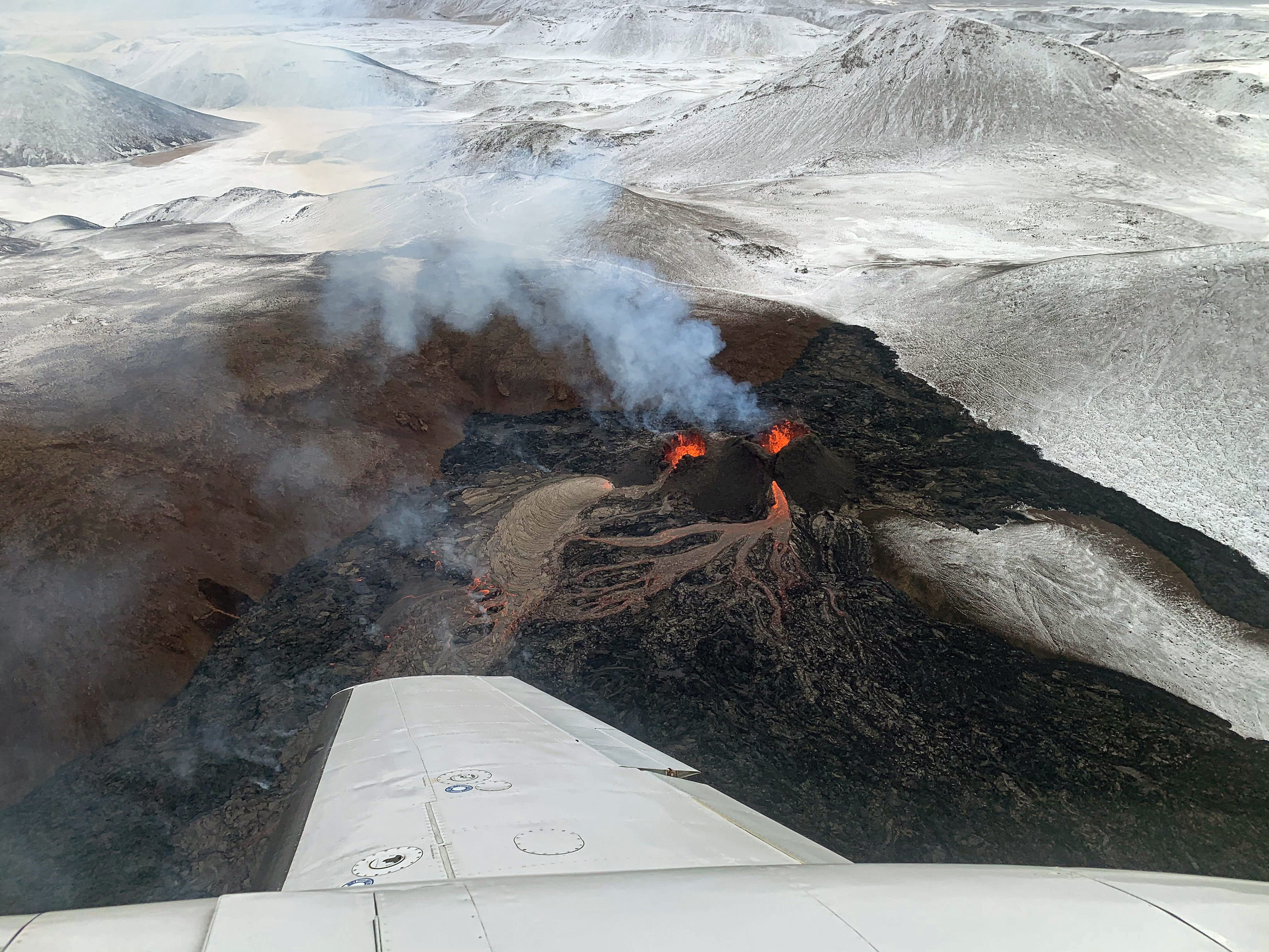 - Fly above the active eruption site and see glowing lava, molten rivers, and illuminated vents when conditions allow.